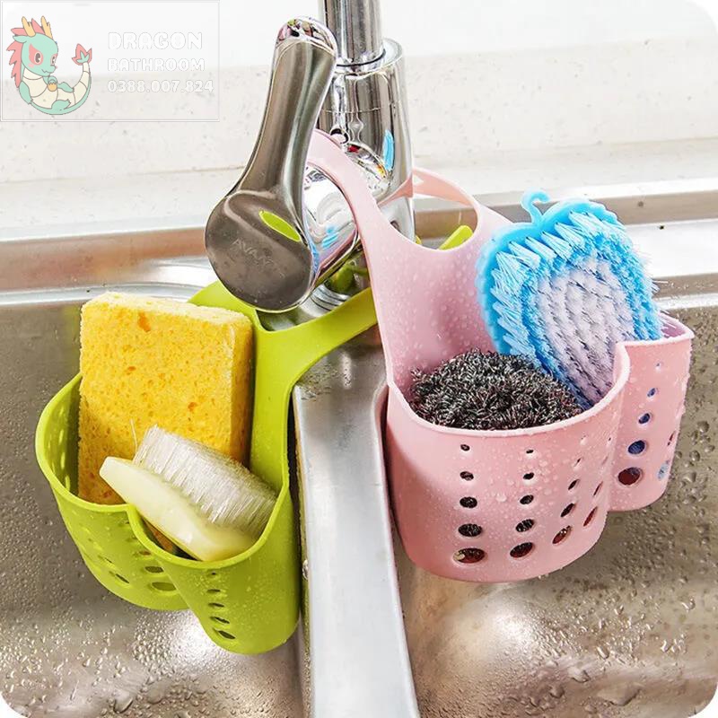 – Quai đeo có khuy cài chắc chắn giúp bạn treo giỏ ngay trên vòi nước thật tiện lợi. Bạn có thể treo ở vòi rửa bát, vòi sen tắm hay vòi chậu Lavabo đều được.
