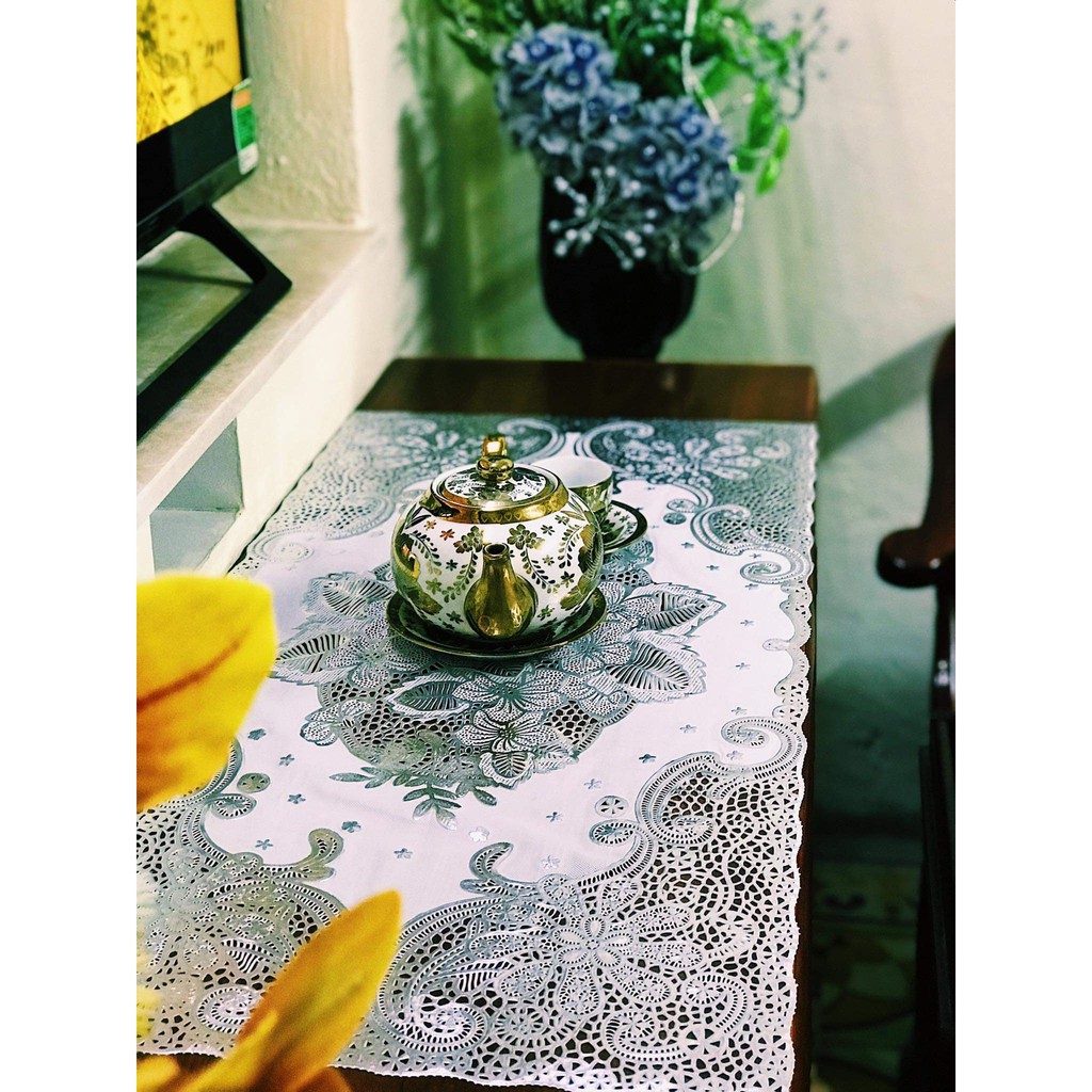 📣📣 Khăn trải bàn Ren Hoa Nhật nhựa PVC hình Bầu dục + Chữ Nhật 40x80cm 📣📣👉Chất liệu: Khăn được sản xuất trên dây chuyền hiện đại theo công nghệ Nhật Bản, chất liệu PVC, hoa văn trang trí được in nổi 3 chiều, dày dặn.