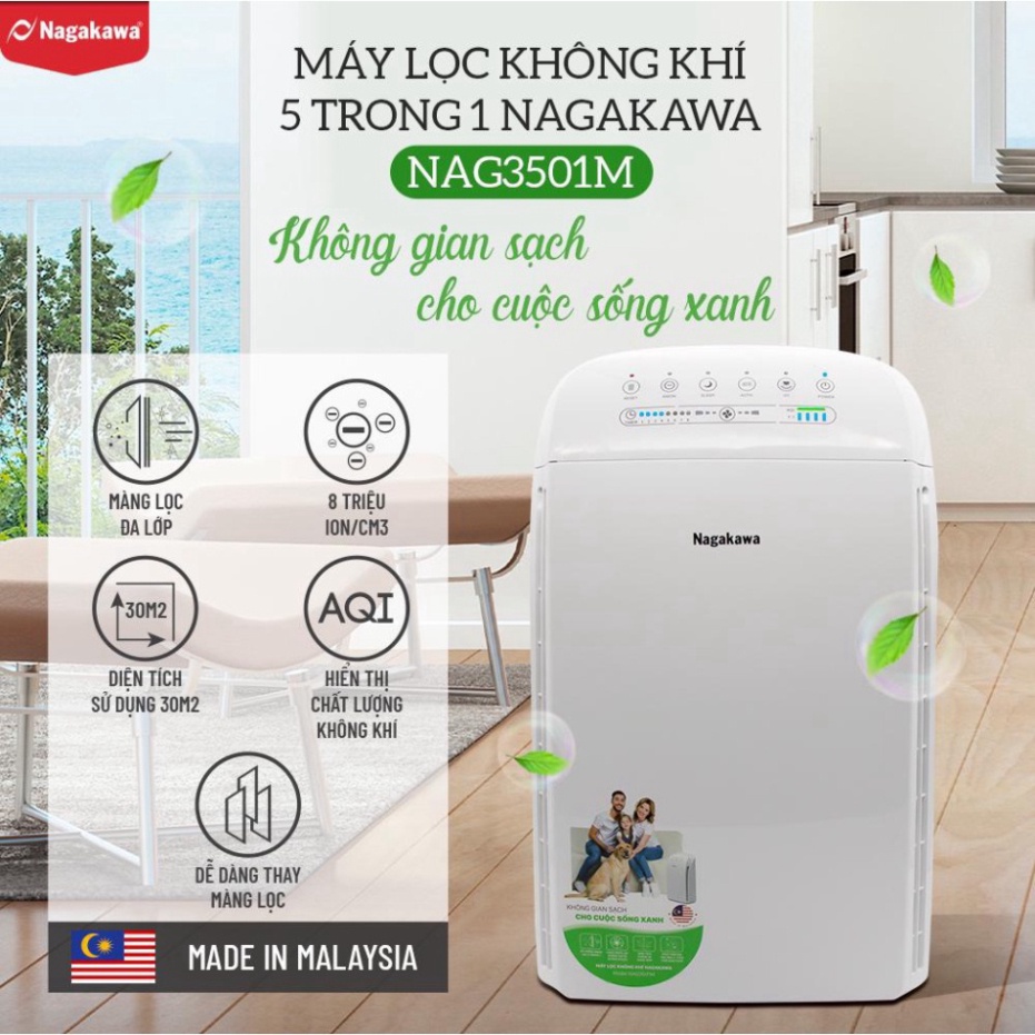 Thiết Bị Điện Gia Dụng > Thiết bị điện gia dụng nhỏ > Thiết bị xử lí không khí > Máy lọc không khí || [Siêu Rẻ] Máy lọc không khí Nagakawa NAG3501M - Lọc HEPA khử mùi -HÀNG CHÍNH HÃNGCòn hàng