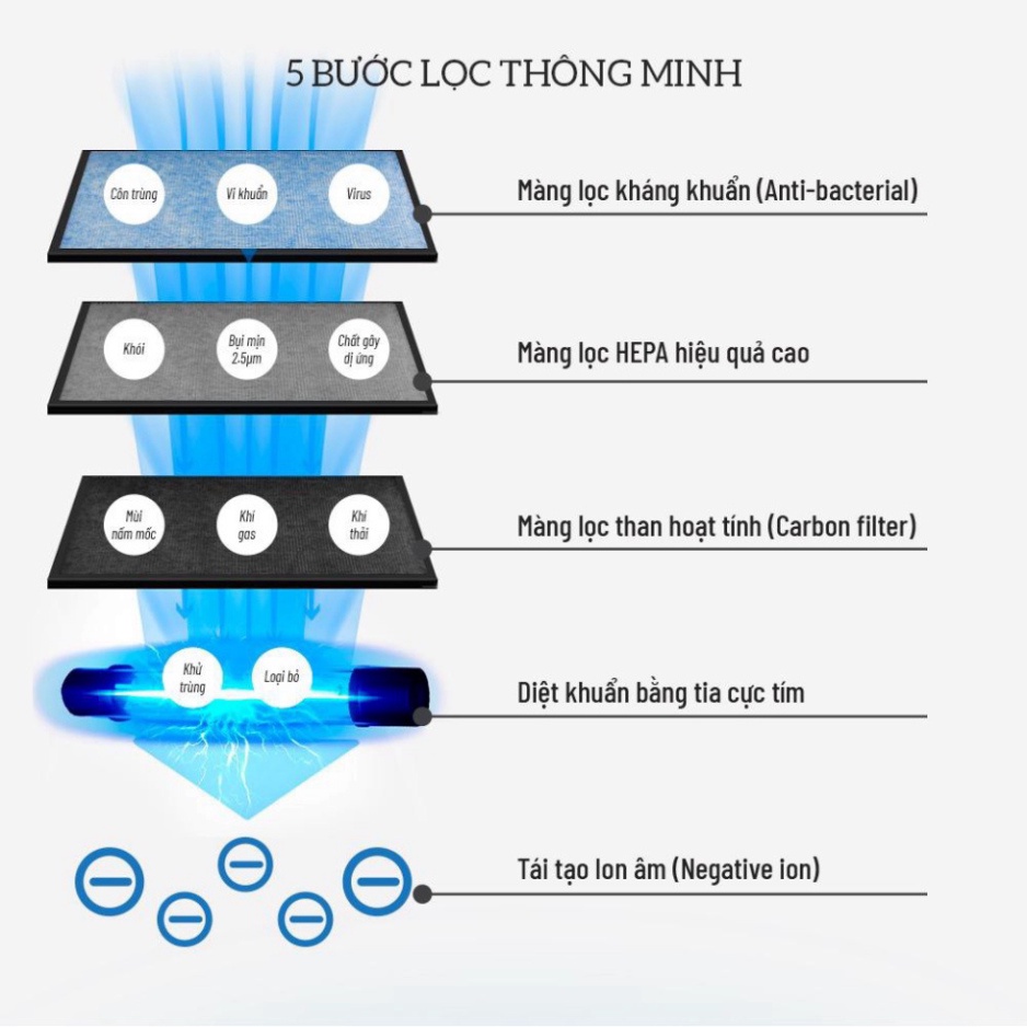 Bước 5: Tái tạo Ion âm (Negative ion) nhằm tối ưu hóa giúp không khí thêm trong lành trở lại.