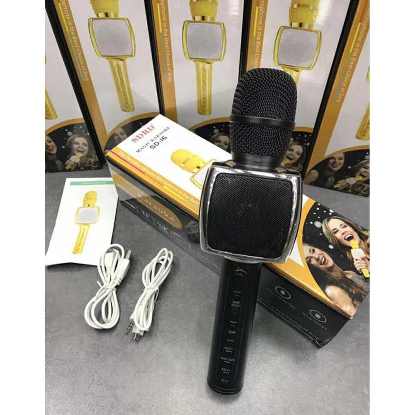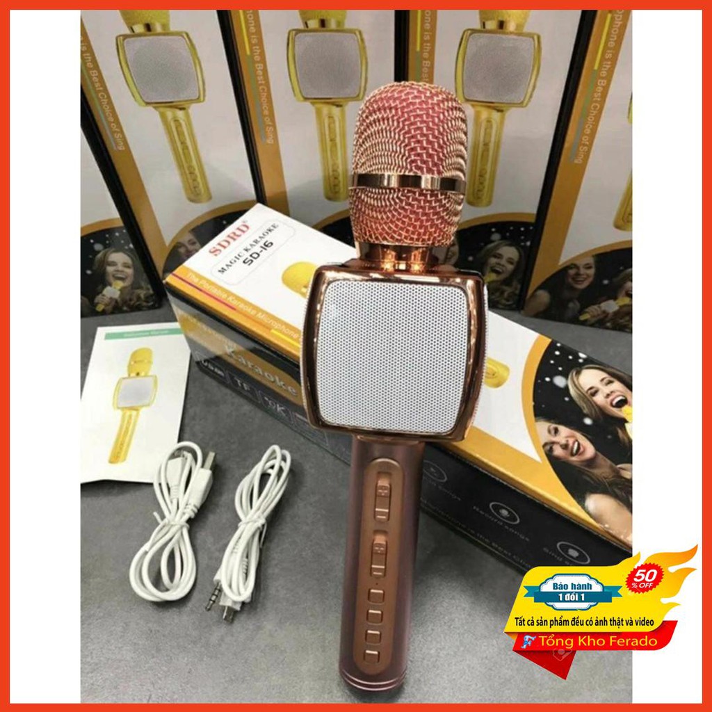 Shop Tổng kho Frerado xin kính chào quý khách , Hôm nay shop xin giới thiệu mẫu sản phẩm được ưa chuộng nhất năm nay cho quý khách cùng tham khảo...Micro Karaoke Bluetooth SD-16 là thiết bị giúp bạn kết nối với điện thoại thông minh hoặc các thiết bị nhận Bluetooth thông qua sóng Bluetooth. Micro SD-16 được trang bị cả loa và mic nên bạn chỉ cần mở một bản nhạc bất kì từ điện thoại là có thể phát trực tiếp ra loa, giúp bạn có thể thỏa thích hát Karaoke với chất lượng âm thanh cực đỉnh và ở bất cứ nơi nào bạn muốn.