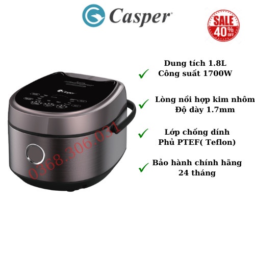 [Siêu rẻ] Nồi cơm điện tử 1.8 lít Casper CD-18RC01 CS 1700W hẹn gờ 24h, Thương Hiệu Thái Lan, Bảo hành 24 thángCam kết hàng chính hãng