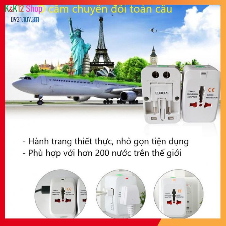 [siêu rẻ] Ổ cắm du lịch đa năng. Ổ cắm chuyển đổi nguồn phù hợp với chuẩn của Châu Âu, Mỹ,Úc, Nhật Bản, hơn 200 Quốc Gia
