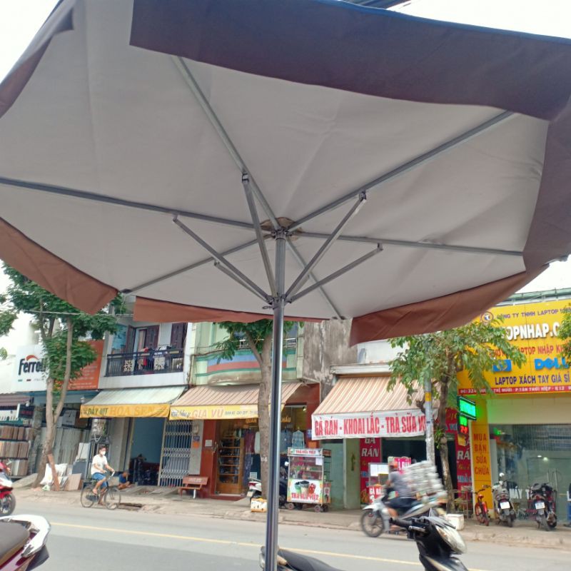 Với tán dù có diện tích che nắng lớn nên dù đúng tâm tròn 2m6 sẻ là lựa chọn tuyệt vời cho những quán có không gian lớn. Tán dù rộng sẻ là một lợi thế khi bố trí bàn ghế xung quanh. Hơn nửa với những không gian thường xuyên chịu tác động của những cơn gió lớn, nhờ kết cấu đối xứng dù đúng tâm sẻ chịu gió tốt hơn. Lúc này khi cần một cây dù vừa che nắng che mưa hiệu quả vừa đảm bảo sự chắc chắn thì dù đúng tâm tròn 2m6 sẻ là lựa hợp lí..