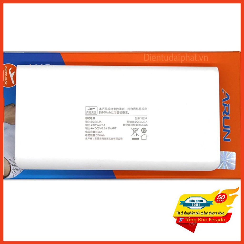[ Siêu rẻ ] Pin sạc dự phòng Arun Y635A 20000mAh