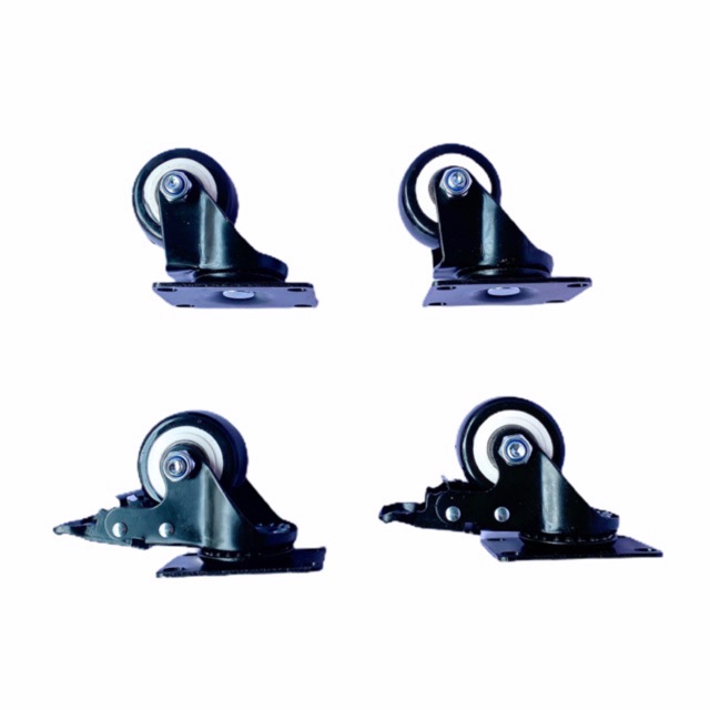 ⚡ Bánh xe đen viền trắng có phanh hãm và bánh không có phanh hãm⚡ Đây là loại bánh cực tốt, chịu được tải trọng cao, chạy êm, nhiều bi