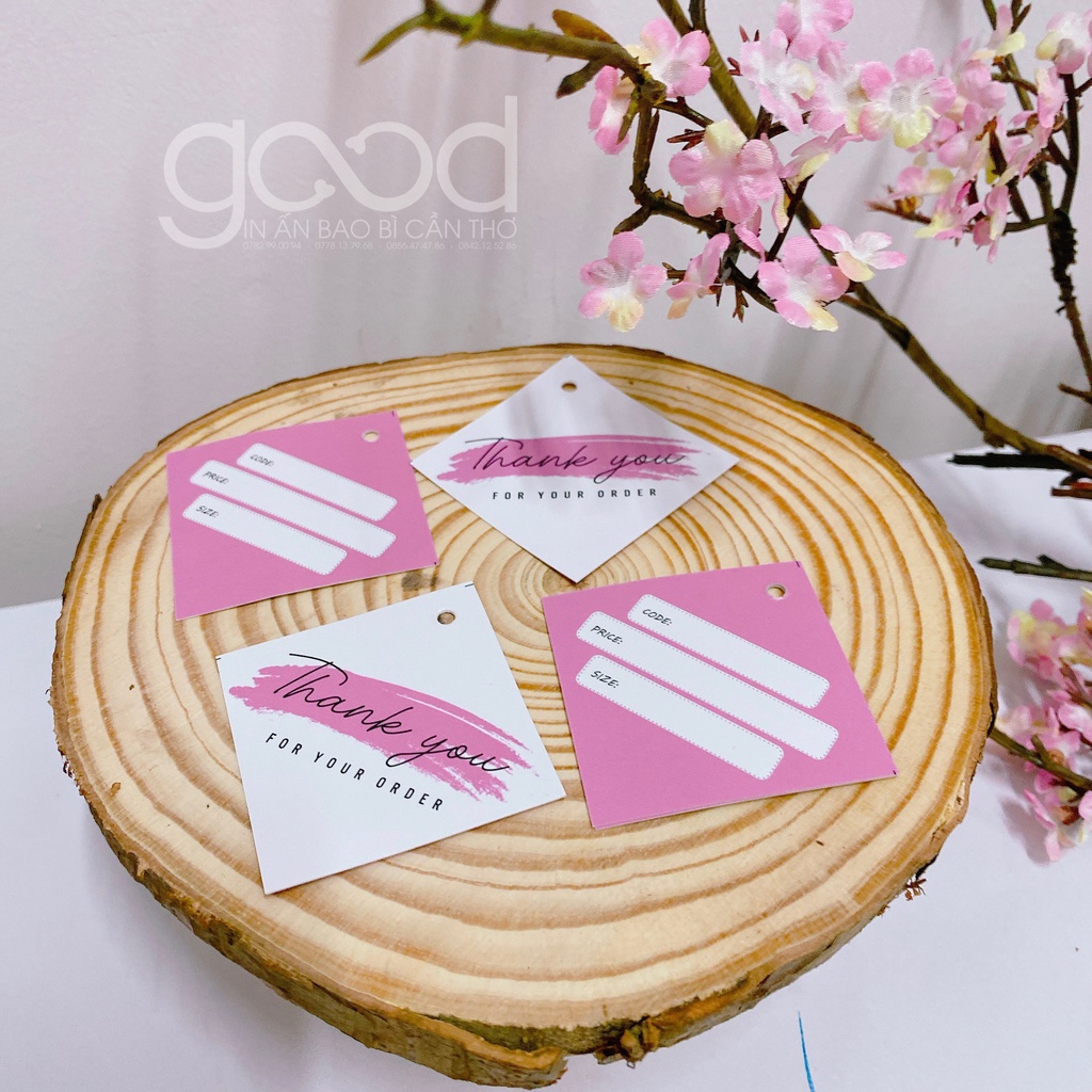 - Card có cán màng mờ 2 mặt, giúp tag dày dặn, sang trọng và hạn chế thấm nước. - Kích thước thành phẩm 4,5 x 4,5 (cm).