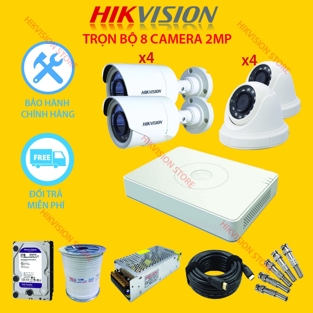 + 8 Camera Hikvision DS-2CE16B2-IPF 2.0MP(Quý khách hàng tùy chọn số lượng mắt khi đặt hàng, có thể đổi sang mắt bán cầu)