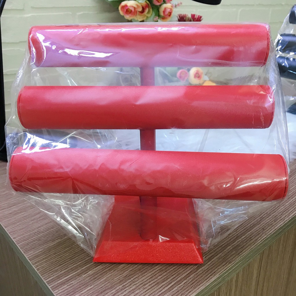 Giới thiệu SIêu Rẻ _ Trụ chữ T 3 tầng màu đỏ, đen, trắng trưng bày chuỗi đá trưng bày trang sức