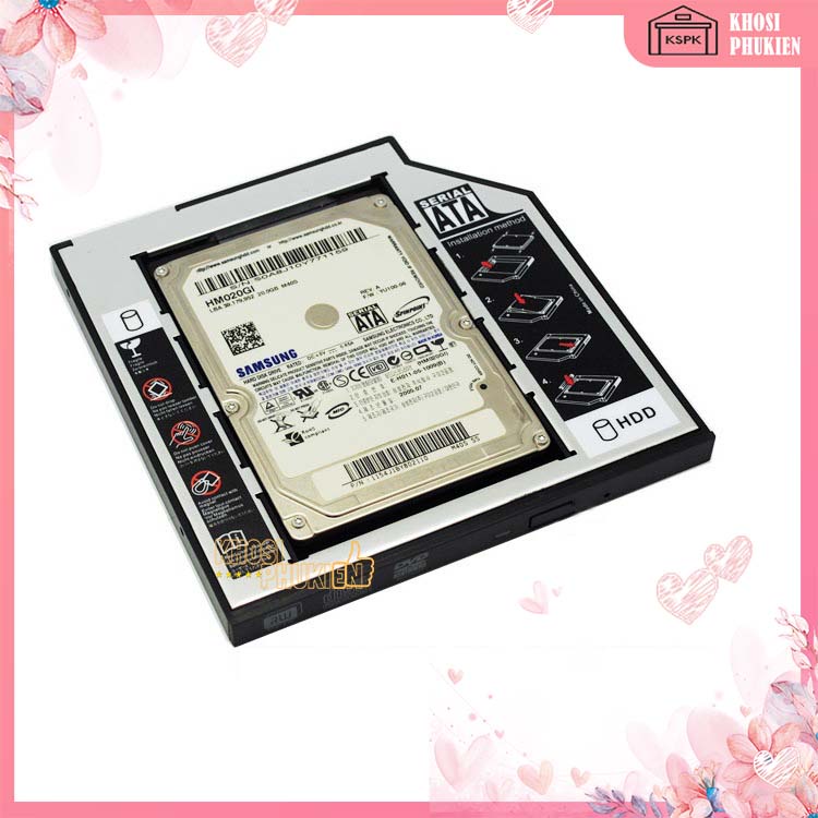 Khay gắn thêm ổ cứng vào khe CD độ dày 12.7mm cho máy tính xách tay thuận tiện khi gắn thêm một SSD/HDD 2.5” cho máy tính xách tay (Bạn nên tìm hiểu ổ DVD trong Laptop của bạn đang chạy chuẩn gì và độ dày của ổ DVD 12.7 mm hay 9.5 mm)