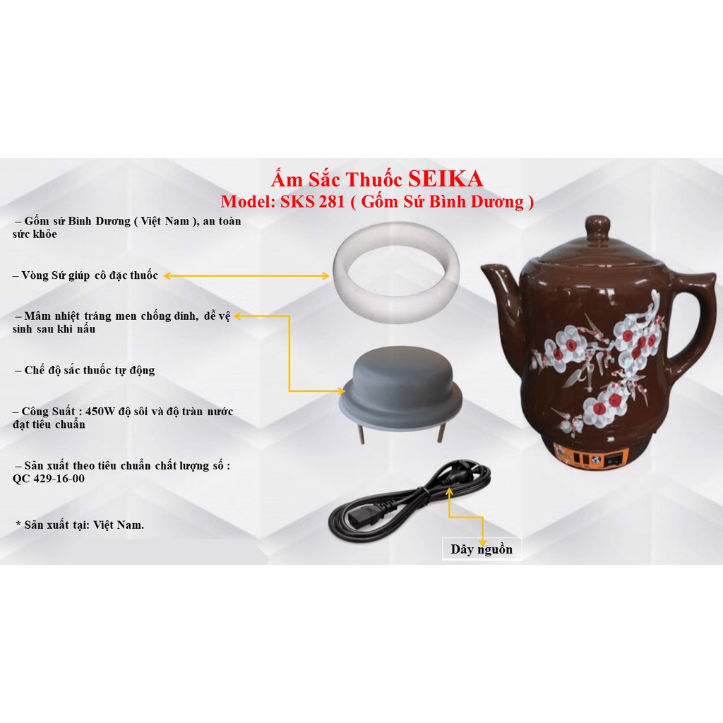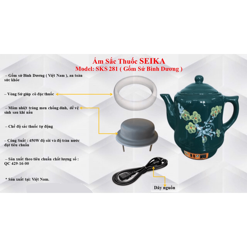 Giới thiệu Siêu sắc thuoc tự động SEIKA 2.8L hàng xuất Nhật Bản gốm sứ cao cấp tráng men chống dính