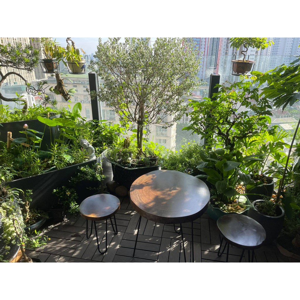 Giới thiệu [Siêu Sale] Bàn cafe gỗ xà cừ| Bàn trà Decor ban công gỗ xà cừ - Chân hairpin cao 60 - 72cm HP Decor Tổng