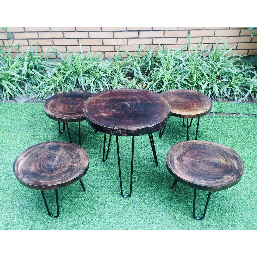 [Siêu Sale] Bàn cafe gỗ xà cừ| Bàn trà Decor ban công gỗ xà cừ - Chân hairpin cao 60 - 72cm HP Decor Tổng