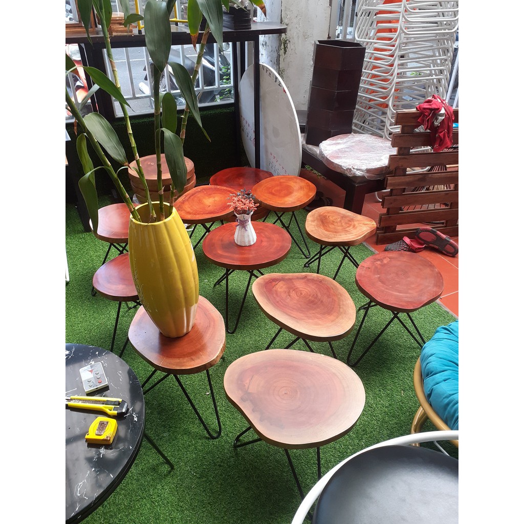 [Siêu Sale] Bàn Xà Cừ chân sắt cao 40cm X D 25cm - 35cm - Bàn cafe gỗ nguyên tấm HPCF 18 HP Decor