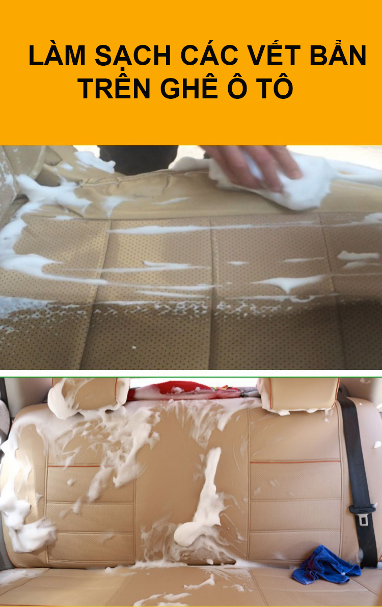 Bước 3: Dùng khăn lau sạch vị trí xịt bọt Một chai có thể dùng 2-3 xe