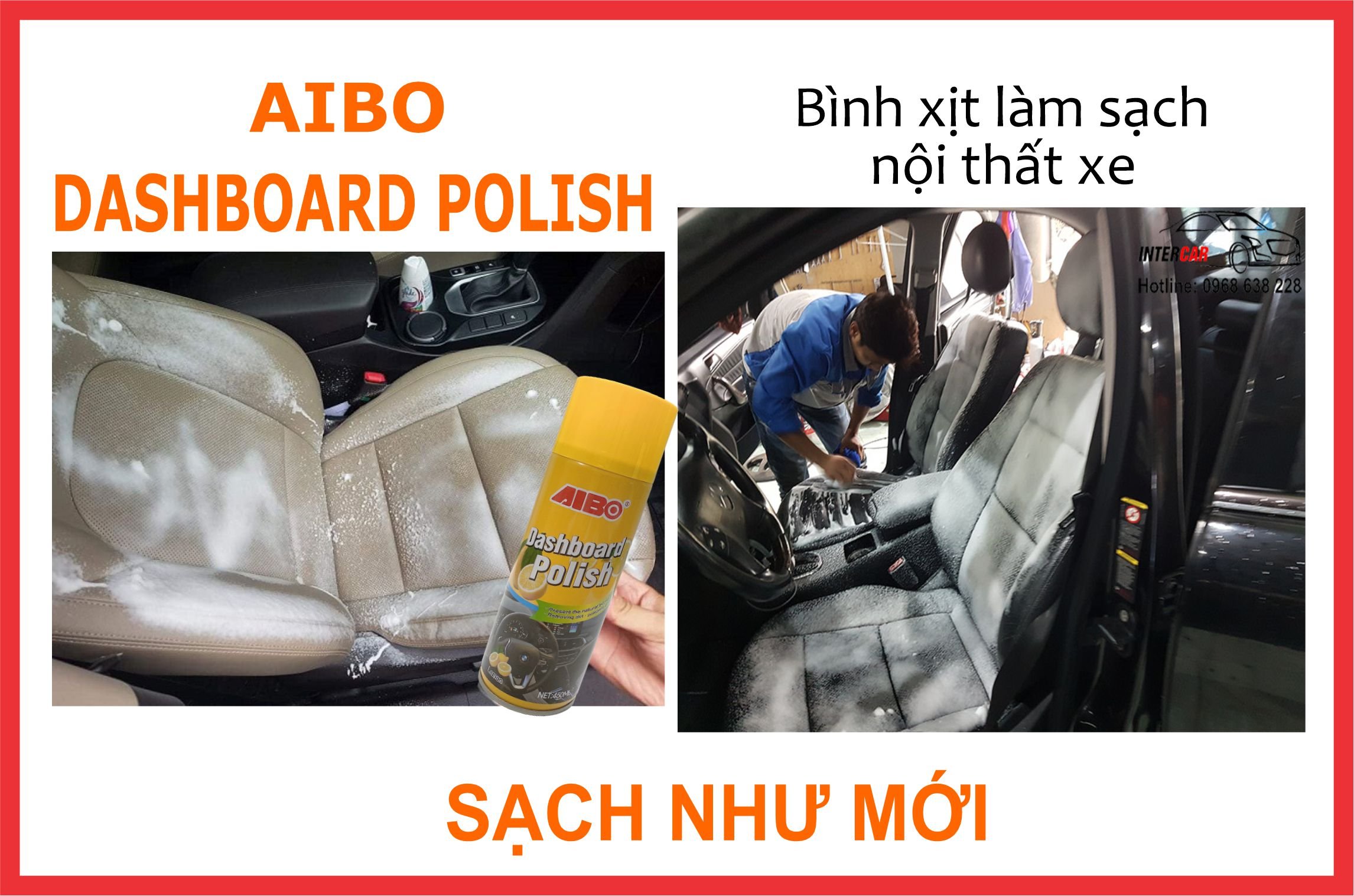- Làm sạch hiệu quả các vết bẩn trong nội thất xe hơi như : bề mặt Taplo, bảng diều khiển đồng hồ, thành cửa xe, trần xe, ghế xe. Đánh bóng và làm mới nội thất xe gồm nhựa cứng, da.
