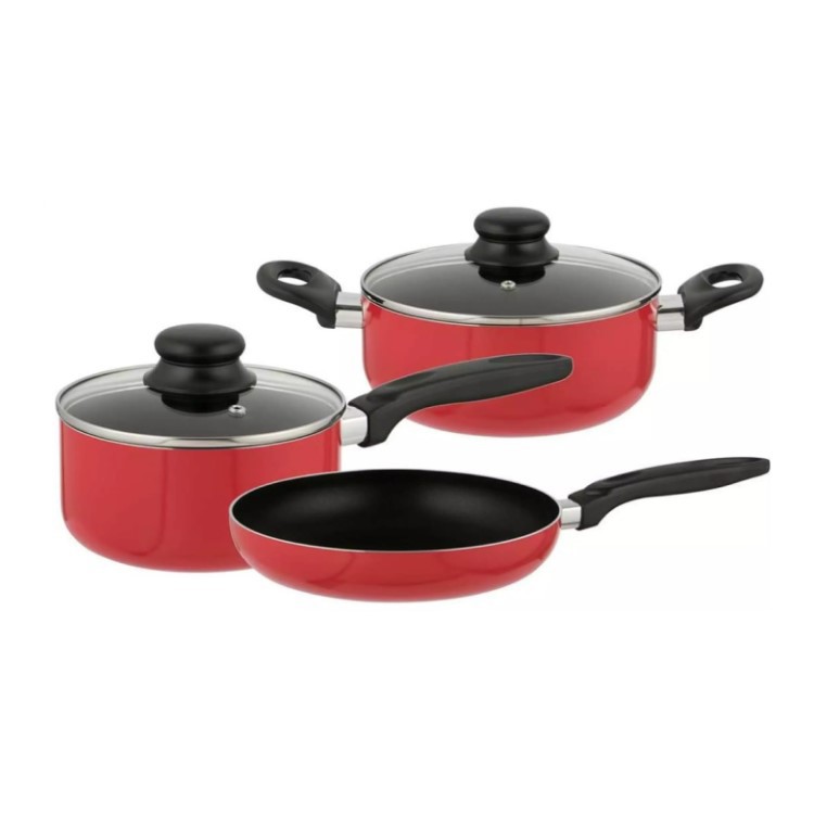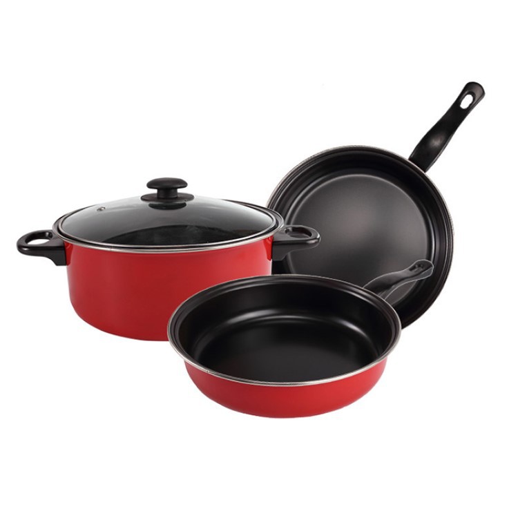 Bộ 3 Nồi Và Chảo Cao Cấp (Đỏ) được làm bằng inox cao cấp, đáy 3 lớp giúp ổn định nhiệt, chống cháy xém thức ăn, giúp bạn và gia đình có được những bữa cơm thơm ngon nhất.