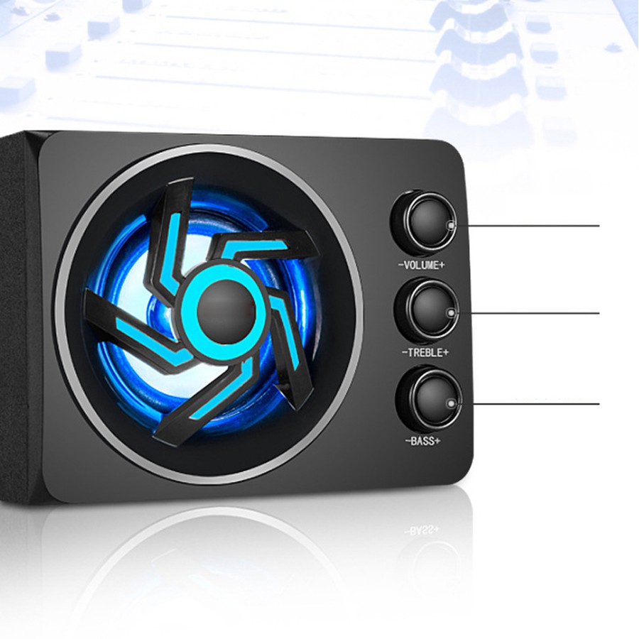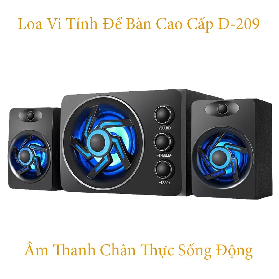 Loa 2.1 Có hệ thống nút điều chỉnh Âm lượng, Bass, Treble Bộ loaD-209 với thiết kế mới khá bắt mắt, bổ sung thêm loa treble giúp âm thanh thể hiện khá đầy đủ.