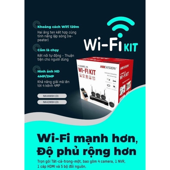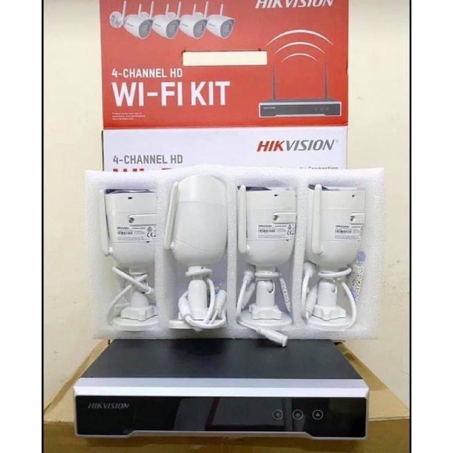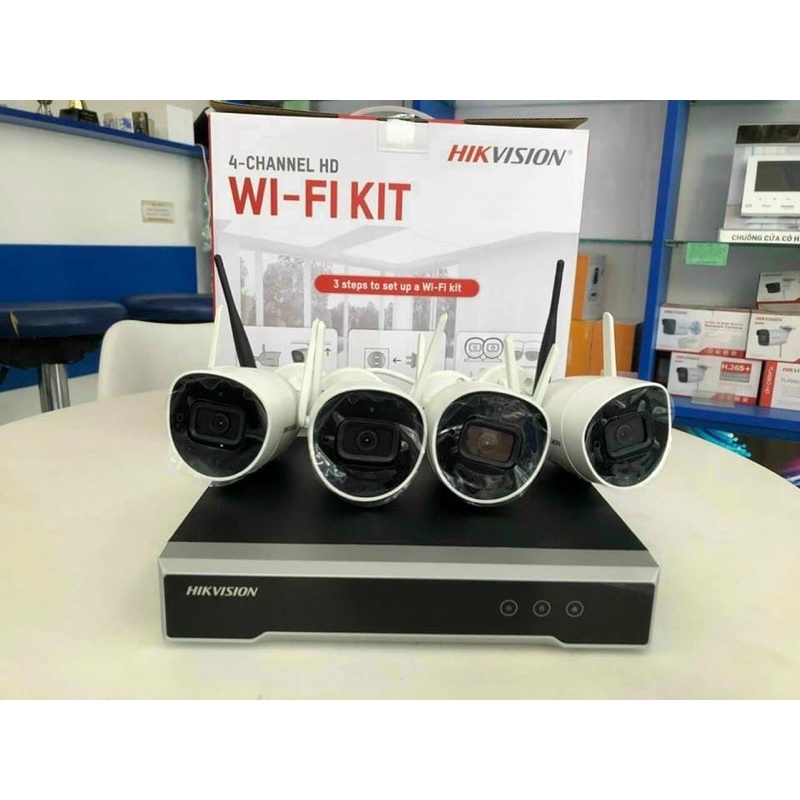 Trọn bộ 4 Camera IP Wifi Hikvision NK42W0H(D) ngoài trời, camera 2 râu, đầu ghi phát wifi xuyên tường