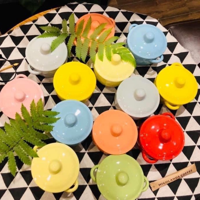 Nhà cửa & Đời sống > Dụng cụ nhà bếp > Dụng cụ pha trà, cà phê || [Siêu sale] Combo 6 hũ caramen, flan, ramenkin 2 tai kèm nắp nhiều màu xinh xắnCòn hàng