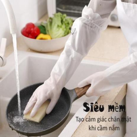 Nhà cửa & Đời sống > Dụng cụ & Thiết bị tiện ích > Găng tay, kính bảo hộ & mặt nạ || [ SIÊU SALE ] Găng tay cao su giữ ấm siêu dai bo chun lót nỉ màu trắng JmaniCòn hàng