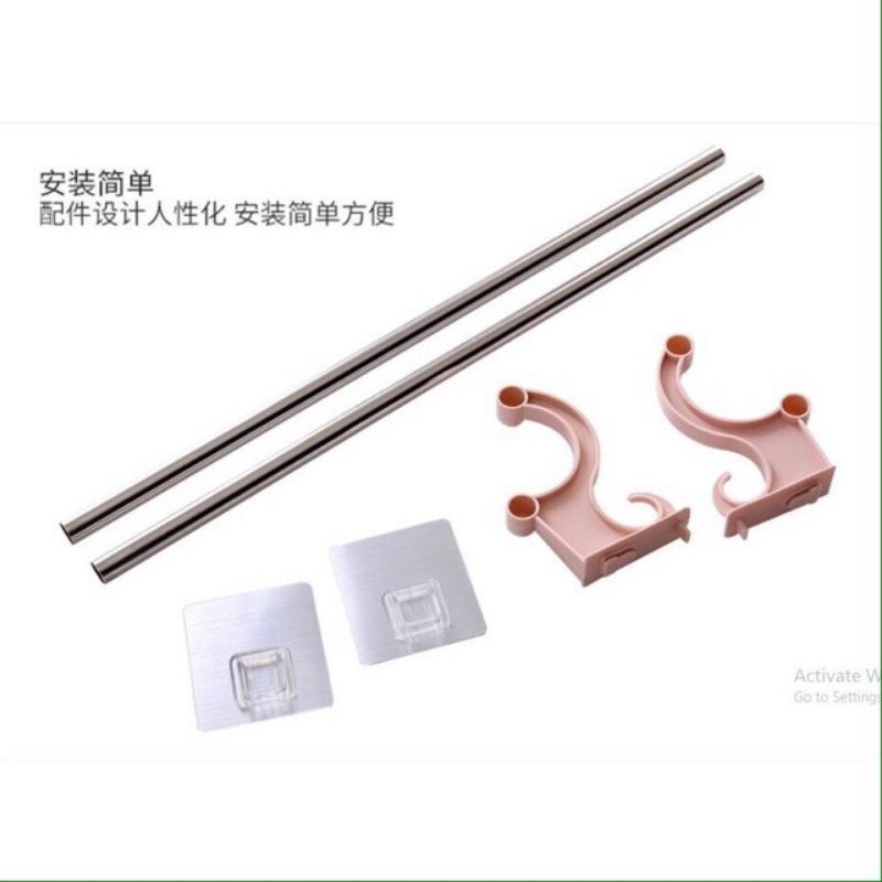 [Siêu Sale] Kệ vắt khăn 2 thanh inox Dính tường siêu chắc Không Cần Khoan Tường
