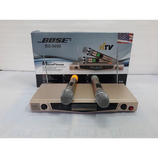 Micro Không Dây BS-9999 Được Người Sử Dụng Yêu Thích Bởi Thiết Kế Đơn Giản Thanh Lịch Gọn Nhẹ Cùng Chất Lượng Âm Thanh Hoàn Hảo, Phù Hợp Với Nhu Cầu Sử Dụng Của Hầu Hết Khách Hàng Tại Việt NamSở Hữu Kiểu Dáng Sang Trọng Thanh Lịch Cùng Chất Lượng Hoàn Hảo So Với Mức Giá Tầm Trung Hợp Lý, Micro Không Dây BS-9999 Là Sản Phẩm Được Yêu Thích Trên Thị Trường Đến Từ Thương Hiệu Danh Tiếng.Đặc Điểm Nổi Bật Của Micro Không Dây BS-9999 Là Khả Năng Bắt Sóng Mạnh Mẽ, Tính Hiệu Âm Thanh Khi Hát Lớn Giúp Ổn Định Âm, Bộ Lọc Tốt Giúp Hạn Chế Tối Đa Tình Trạng Nhiễu Sóng.Micro Có Độ Hút Âm Mạnh Có Thể Đạt Từ 20-30cm Khoản Cách Từ Miệng Người Hát.Tính Chất Âm Phát Ra Trầm Ấm Nhưng Vẫn Trong Sáng,Rõ Lời Không Bị Vỡ Tiếng Khi Hát Lớn