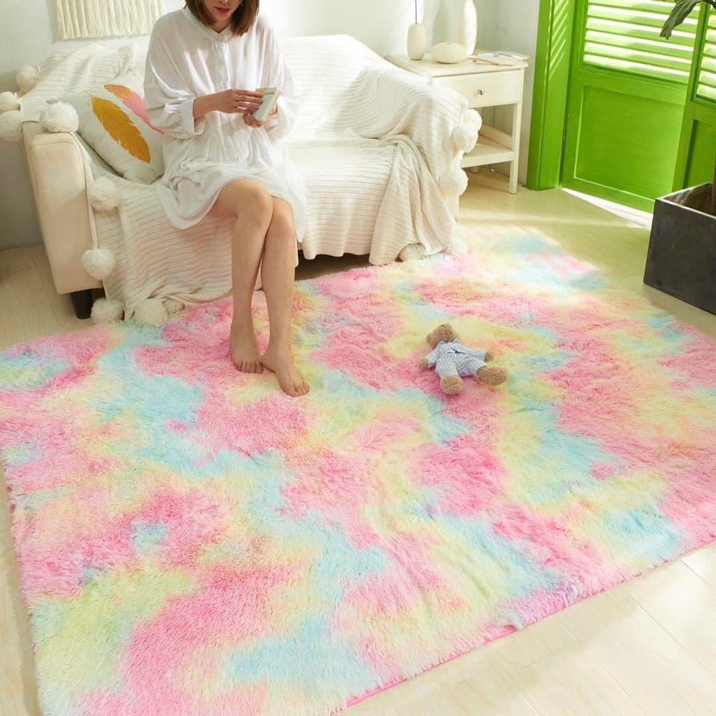 Thảm lông loang trải sàn dày mềm mượt đế chống trơn trượt đủ màu sắc kích thước 1M6x2MThảm lông loang được thiết kế 3 lớp: Lớp trên là mặt lông dày mềm mượt chống bám bụi, lớp giữa là lớp bông kháng khuẩn tạo độ êm ái, lớp dưới được phủ cao su hạt chống trơn trượt, an toàn tuyệt đối khi sử dụng
