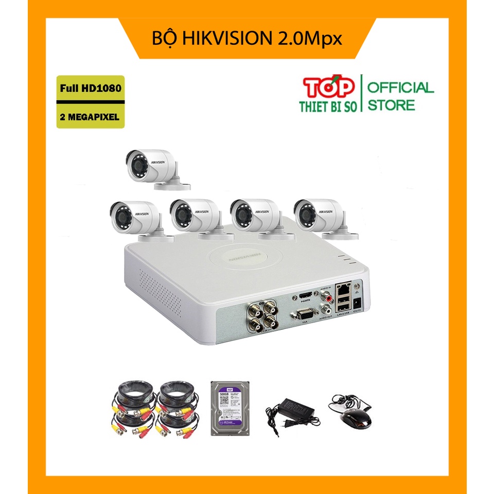 ( SIÊU SALE ) Trọn Bộ 5/6/7/8 Camera giám sát HIKVISION 2.0MP-1080P Chính hãng, Kèm ổ HDD & Đầy đủ phụ kiện lắp đặt