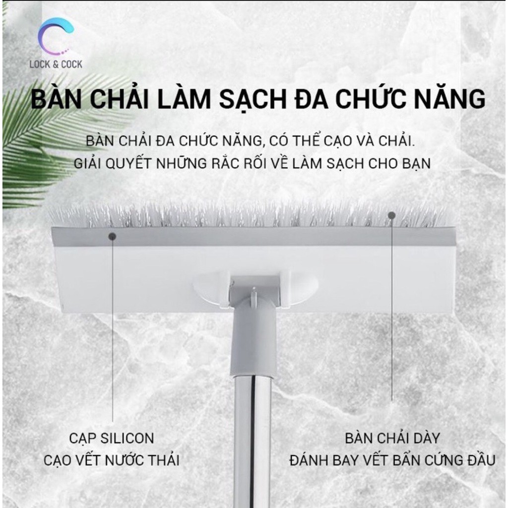 ✔Sử dụng hai mặt : với thiết kế gọn một mặt quét dễ dàng điều chỉnh loại bỏ vết bẩn trên sàn nhà vệ sinh và các cạnh góc chết , một mặt cạo và làm sạch