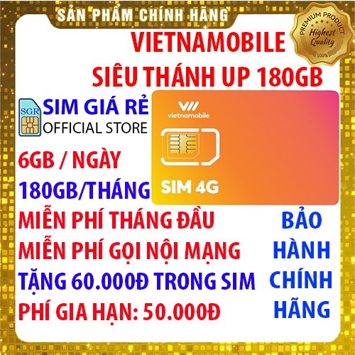 -LOẠI 4: SIM SIÊU THÁNH UP: MIỄN PHÍ 180GB (6GB/NGÀY) DATA 4G THÁNG ĐẦU, TÀI KHOẢN CÓ 60.000Đ, MIỄN PHÍ GỌI NỘI MẠNG, PHÍ DUY TRÌ 40K ĐƯỢC 24 NGÀY, 50K ĐƯỢC 30 NGÀY. HẠN ĐỂ DÀNH KHI CHƯA XÀI TỪ 2-3 THÁNG, QUÝ KHÁCH CÓ THỂ MUA NHIỀU SIM ĐỂ DÀNH
