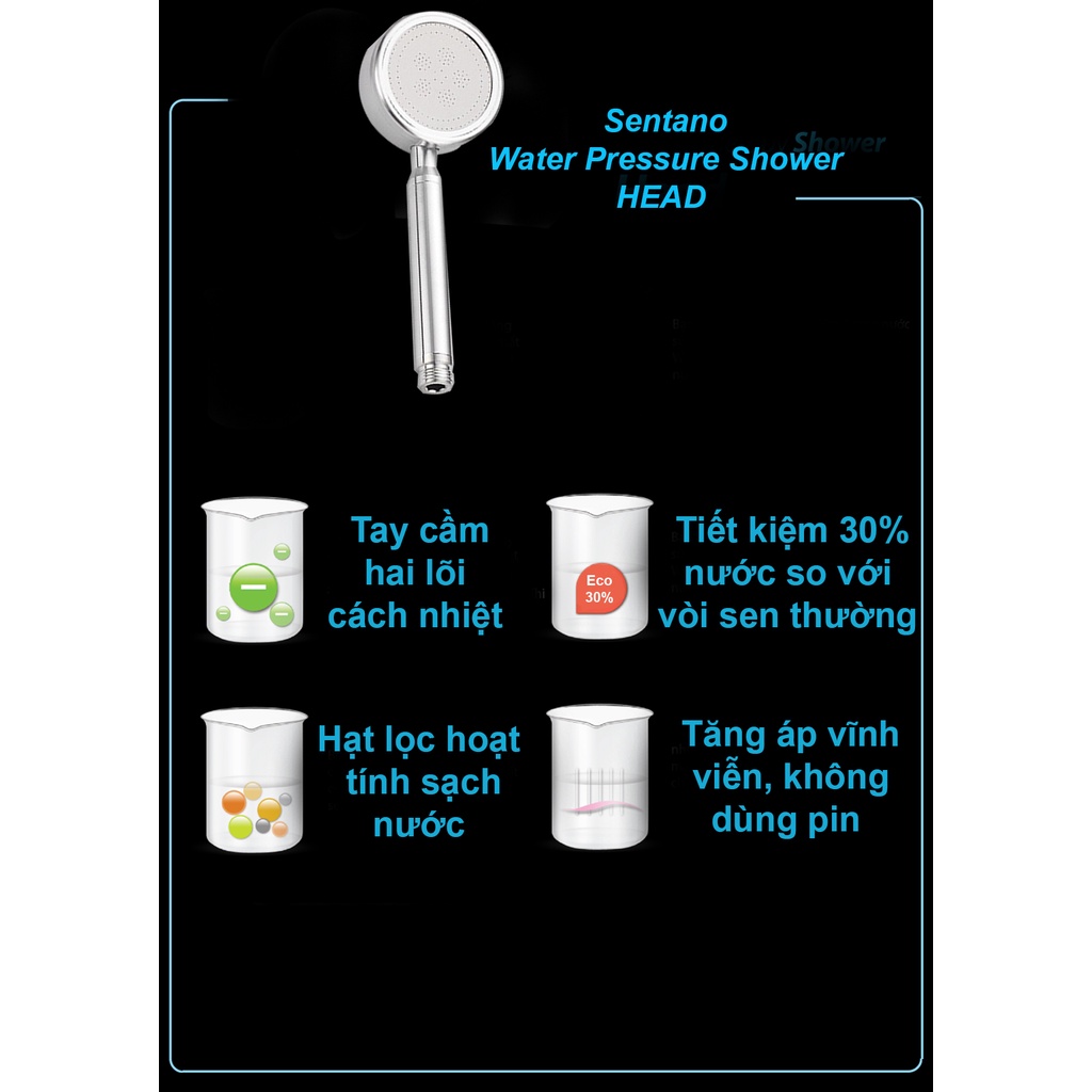 [SIÊU TĂNG ÁP] Full bộ vòi sen tắm tăng áp Sentano (TAY SEN+DÂY+GÁC CÀI) siêu mạnh chất liệu NHÔM CỨNG bền không gỉ sét