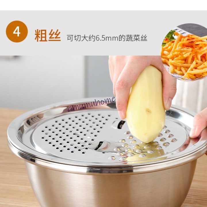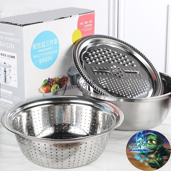 Nhà cửa & Đời sống > Dụng cụ nhà bếp > Bàn nạo, dụng cụ bào, cắt || (siêu tiện dụng)Bộ rổ inox kèm nạo rau củ inox 3 chi tiếtCòn hàng
