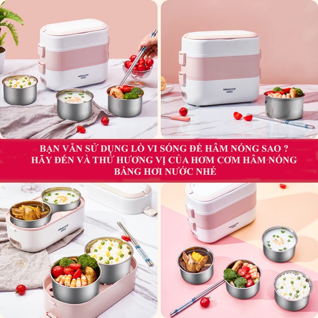 Hộp Cơm Cắm Điện Đa Năng Hâm Nóng Và Tự Nấu Chín Cơm, Thức Ăn Với 4 Ngăn Inox Cho Nhân Viên Văn Phòng, Sinh ViênMột sản phẩm tiện lợi và đa năng cho những bạn thường dậy muộn và không kịp nấu thức ăn chín mang đi làm thì với chiếc hộp cơm này bạn chỉ cần sơ chế thực phẩm, phân chia vào từng hộp và bấm nút, nó sẽ giúp bạn làm chín nhiều món ăn cùng lúc.