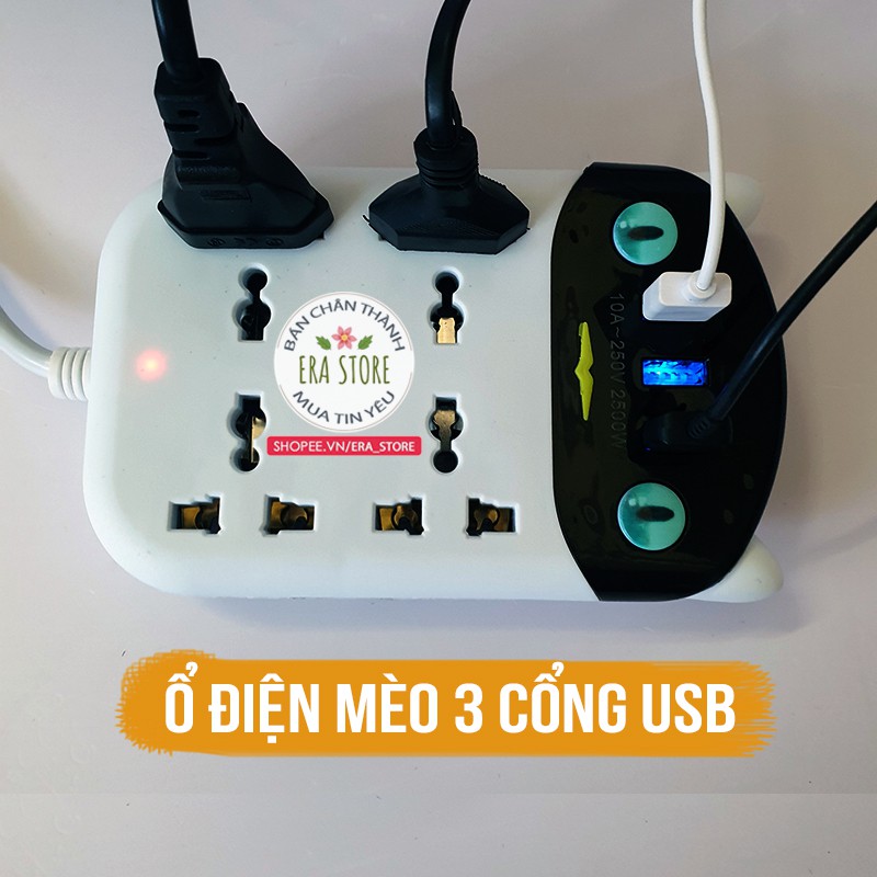 Thiết Bị Điện Gia Dụng > Mạch điện & Phụ tùng > Ổ cắm điện & Dây nối || [SIÊU TIỆN LỢI] Ổ cắm điện mèo 3 cổng USB 2 công tắc dây dài 2,5m đa năng nhiều ổ tích hợp các kiểu chân cắm gọn nhẹCòn hàng