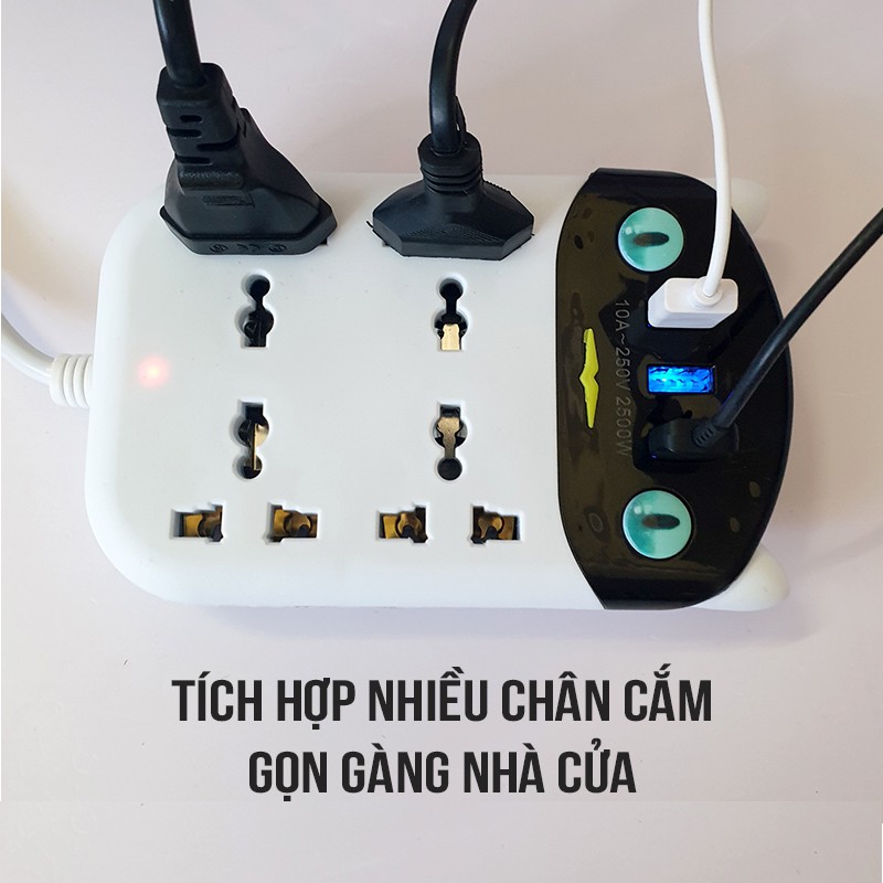 [SIÊU TIỆN LỢI] Ổ cắm điện mèo 3 cổng USB 2 công tắc dây dài 2,5m đa năng nhiều ổ tích hợp các kiểu chân cắm gọn nhẹ