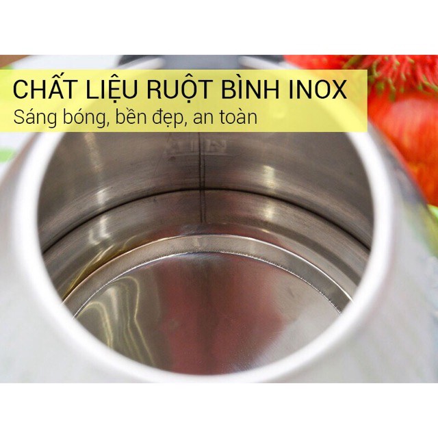 -Chất liệu thân ấm: inox sáng bóng, không gỉ