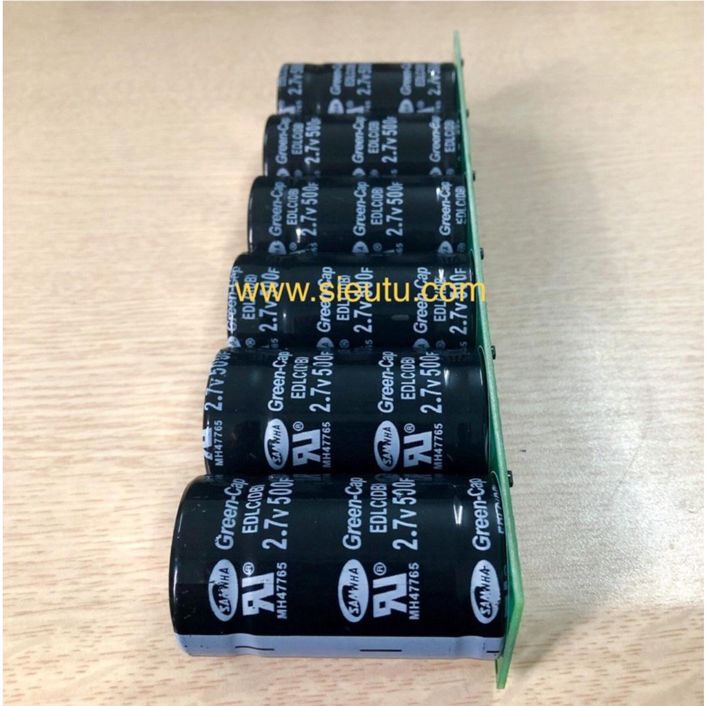– Điện áp: 16.2V (06 siêu tụ điện 2.7V 500F mắc nối tiếp)