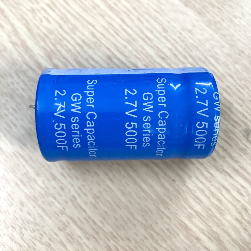 Siêu tụ điện 500F 2.7V (màu ngẫu nhiên) chất lượng cao, có thể sử dụng hỗ trợ acquy khởi động xe máy mượt mà và hỗ trợ cực tốt cho xe độ đèn trợ sáng hoặc còi công suất lớn, sử dụng làm tụ bù cho năng lượng mặt trời...* Ghép nối tiếp 06 siêu tụ điện này sẽ tạo thành pack siêu tụ điện 16V83F có dòng xả tức thời 85A, đấu song song với acquy xe ô tô sẽ hỗ trợ khởi động rất mượt mà, giúp cho các bình acquy đã "già yếu" vẫn khởi động xe trơn tru và kéo dài tuổi thọ của bình acquy thêm một thời gian dài thay vì phải thay thế bình acquy khi chưa sử dụng siêu tụ điện.