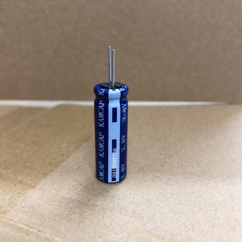 Siêu tụ điện 3.8V 100F chính hãng KAMCAP nổi tiếng. Phù hợp cho DIY, nguồn nuôi, backup, bluetooth với điện dung lớn 100F (100.000.000 uF), khả năng trữ điện rất ấn tượng 32mAh. Siêu tụ có tuổi thọ cao hàng chục năm sử dụng liên tục.Ưu điểm của siêu tụ điện 3.8V 100F KAMCAP là kích thước rất nhỏ gọn (đường kính 10mm * chiều cao 30mm).