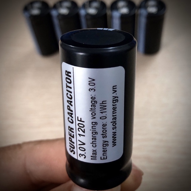 Siêu tụ điện 120F 3.0V chân to (2mm) mật độ năng lượng cao với khả năng phóng dòng điện lên đến 40Ampe.Sử dụng khởi động xe máy hoặc đề nổ các loại máy tương đương bằng cách ghép nối tiếp 05 siêu tụ với nhau. Ngoài ra còn có thể sử dụng làm tụ bù cho tấm pin năng lượng mặt trời hoặc backup điện dự phòng cho các thiết bị.