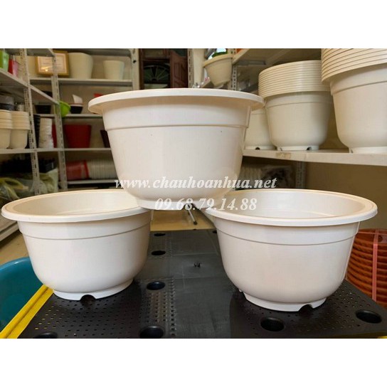 Chậu A bốn mùa in hoa và trơn trắng có các cỡ như sau:A250 230*140