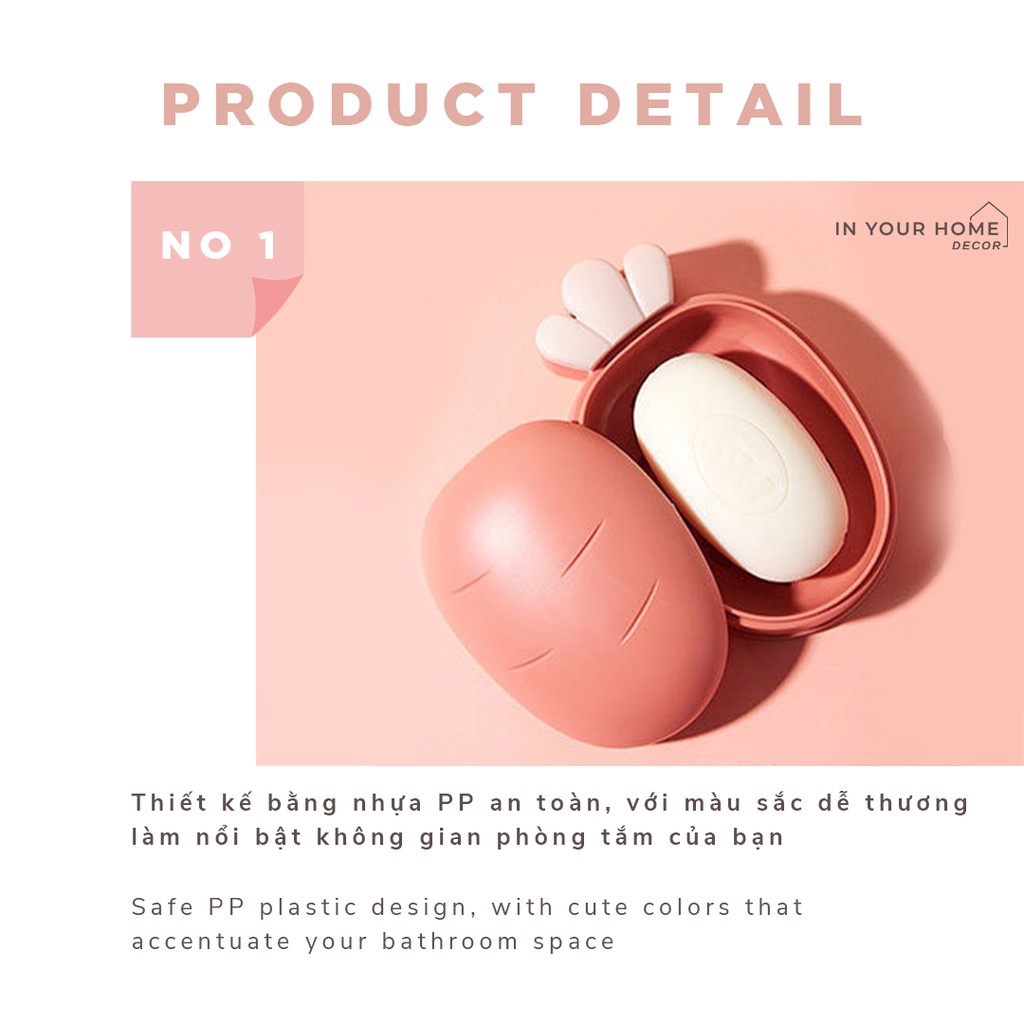 Giới thiệu [SIÊU XINH] Hộp đựng xà phòng cà rốt dễ thương có đáy thoát nước có nắp