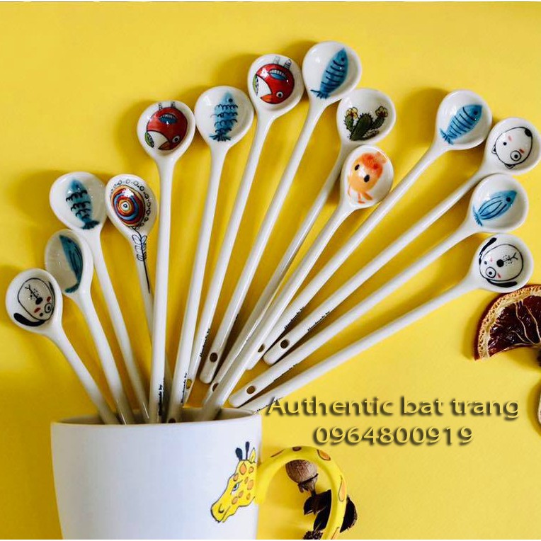 SIÊU XINH - Thìa (muỗng) hoạ tiết vẽ tay thủ công - sản xuất tại xưởng gốm sứ Authentic Bat trang