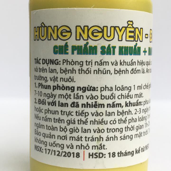 Vật tư nông nghiệp Thành Loan chuyên bán buôn bán lẻ tại Hà Nội vật tư, Dung dịch sát khuẩn nano bạc Hùng Nguyễn lọ 20mlMột loại chế phẩm đặc biệt với tính năng sát khuẩn, phòng trừ nấm bệnh hiệu quả, tích hợp các phân tử Nano bạc bảo vệ tốt nhất cho vườn lan nhà bạn. Phòng trị hiệu quả các loại vi khuẩn, nấm bệnh cho phong lan (Bệnh chết nhanh, bệnh thối nhũn, thối nâu…) các loại nấm giá thể…
