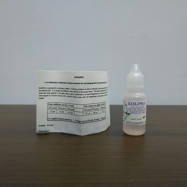 ➖Là thuốc kích thích cây phong lan phát triển một cành hoa mới hay một cây con mới. Các keiki hình thành giống hệt cây mẹ về mặt di truyền. Thông thường là sau chu kỳ nở hoa, cây tự phát triển keiki mới, tuy nhiên một số trường hợp (ví dụ như cây đã già cỗi hay đơn thuần là lười biếng) cây cần sự thúc đẩy hay đánh thức việc hình thành keiki.