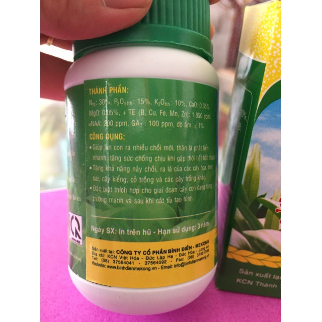 Công dụng: - Tăng khả năng ra lá, đâm chồi của các cây hoa, bon sai, kiểng, cỏ và các loại cây trồng khác.