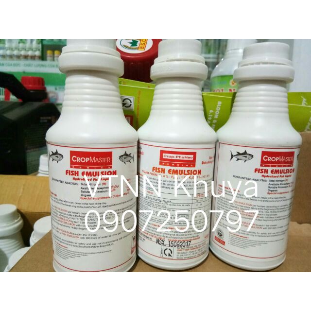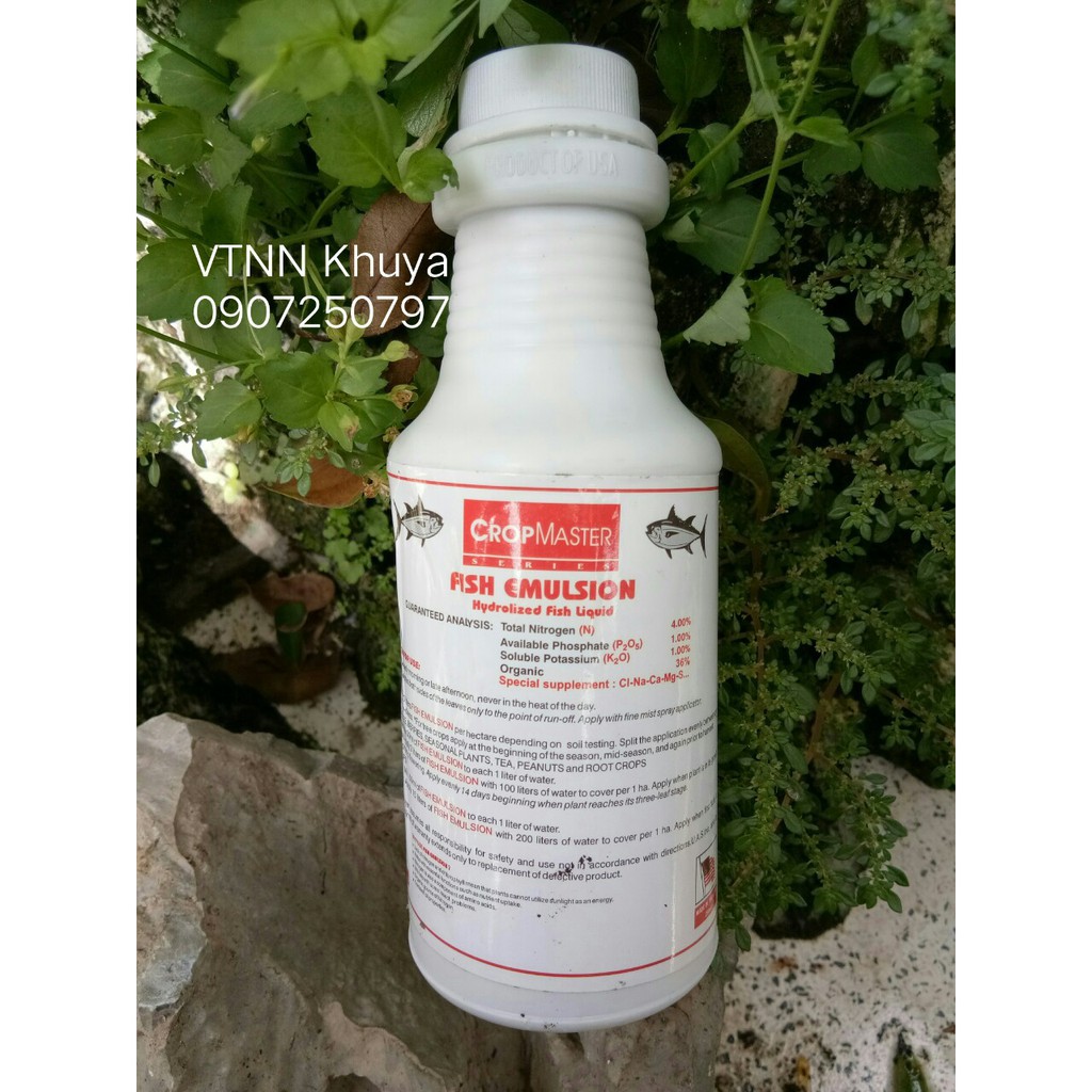 Fish Emulsion là chế phẩm hữu cơ bón lá tinh khiết đậm đặc, được chiếc xuất từ cá Mòi nguyên con bằng phương pháp thủy phân lấy từ vùng biển lạnh Menhaden của Hoa Kỳ, đặc biệt bổ sung vi lượng Cl, Na, Ca, Mg, S… giúp cây hấp thụ tức thì chất đạm hữu cơ. Cây lớn nhanh, lá xanh dày. Gia tăng năng suất và chất lượng sản phẩm sau thu hoạch. Cải tạo đất xấu, đất pha cát và đẩt bạc màu
