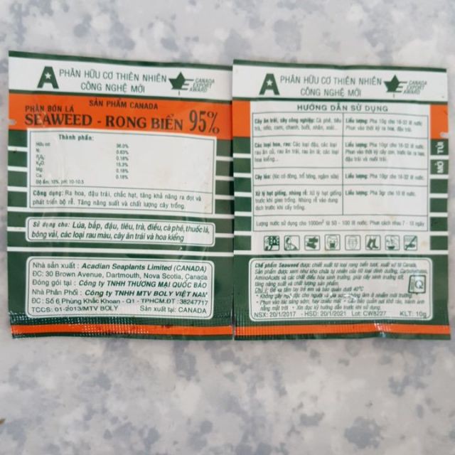 [SIEURE] Phân bón hữu cơ thiên nhiên Seaweed - Rong Biển hàng đẹp, phân phối chuyên nghiệp.