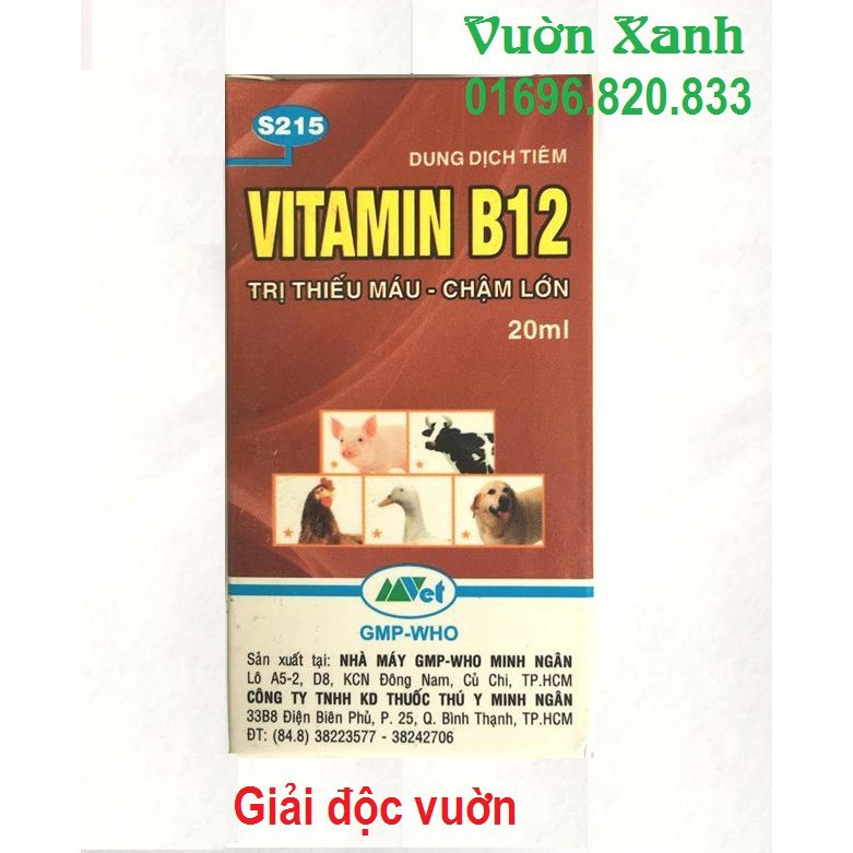 Vật tư nông nghiệp Thành Loan chuyên bán buôn bán lẻ tại Hà Nội vật tư, Vitamin B12 cho cây cảnh, phong lan giúp cây sản sinh ra tế bào mới, hiệu quả trong giải độc cho cây khi dùng quá liều phân bón hay thuốc trừ bệnh.Tuy là thuốc dùng trong thú y, nhưng lại ứng dụng trong trồng cây. Mục đích là làm cây sản sinh ra tế bào mới, dùng khi